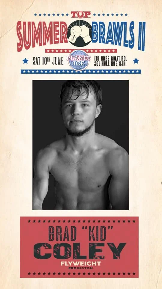 On Tommy Owens’ marathon 12 bout show at Planet Ice, Solihull, it happens. Birmingham’s scrapping siblings Lewis and Bradley Coley both appear on the show entitled Summer Brawl II. Both are products of Kingstanding’s 2nd City gym, domain of well-known boxing family, the Farrells.