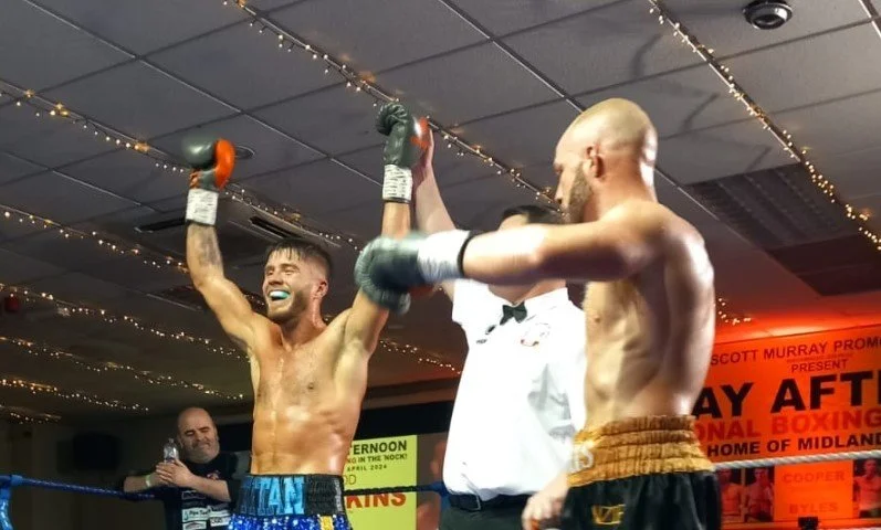 The super-middle looked sharp at the Premier Suite, Cannock, on Sunday. He kept the jabs followed, doubling and trebling the leads, to take a landslide 40-36 decision over seasoned and well travelled CJ Wood.